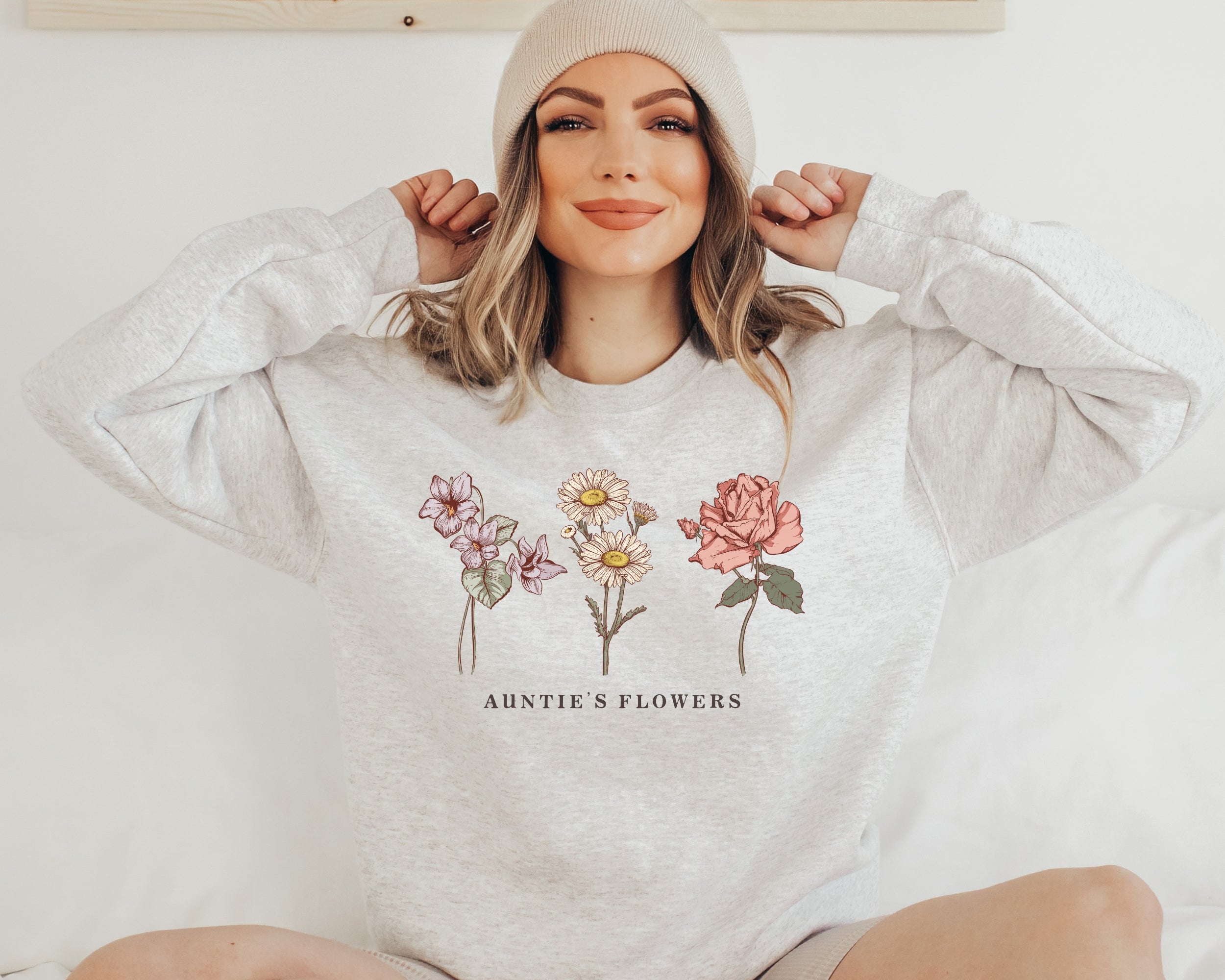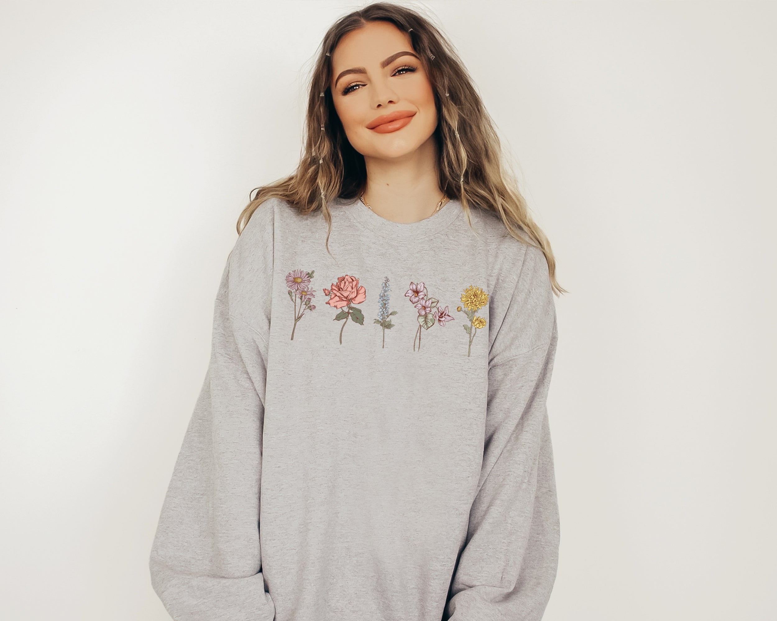 This beautiful CUSTOM birth month flower sweatshirt, hoodie, or t-shirt is the perfect addition to any mom or grandma's wardrobe so she can show off her babies to the world!