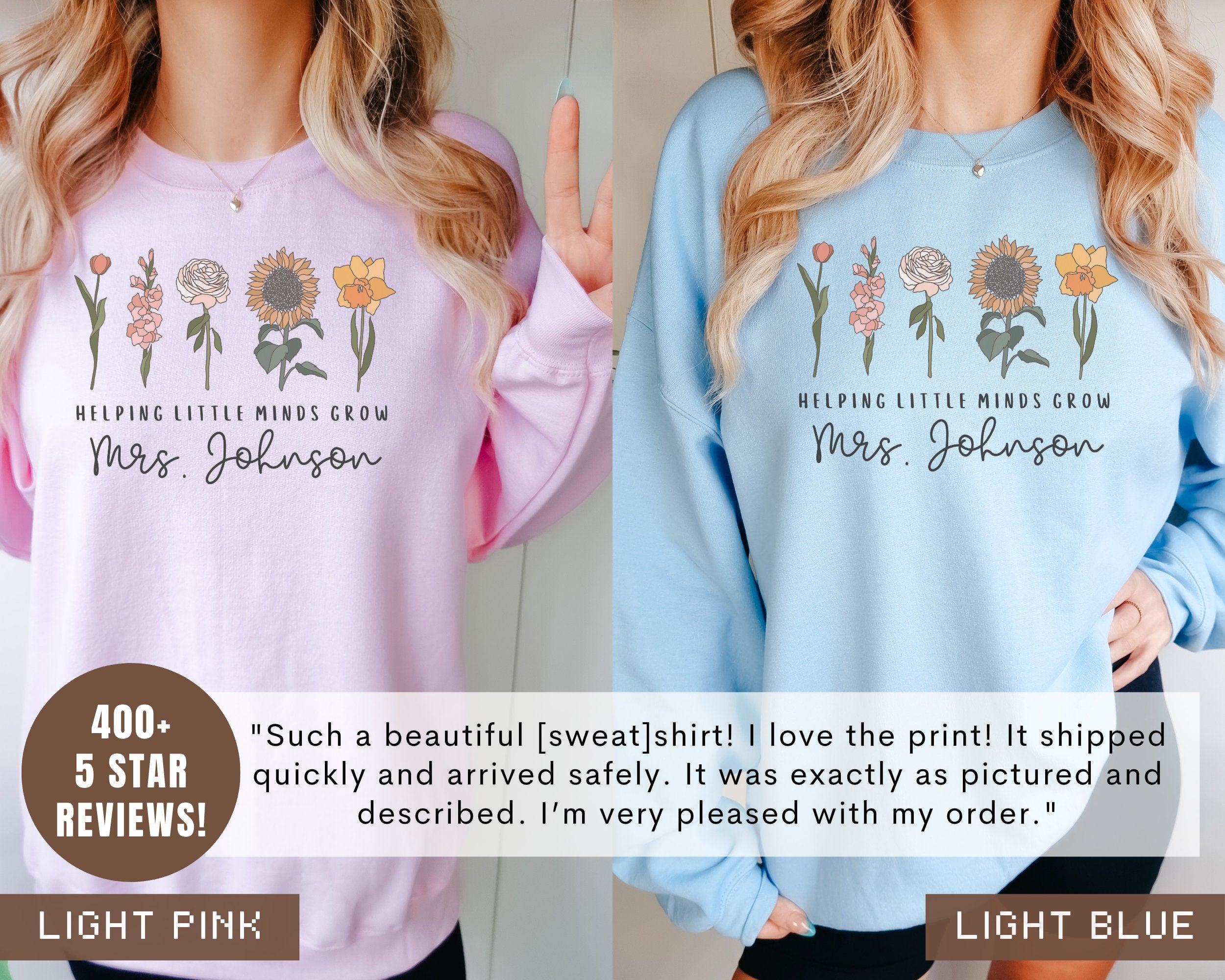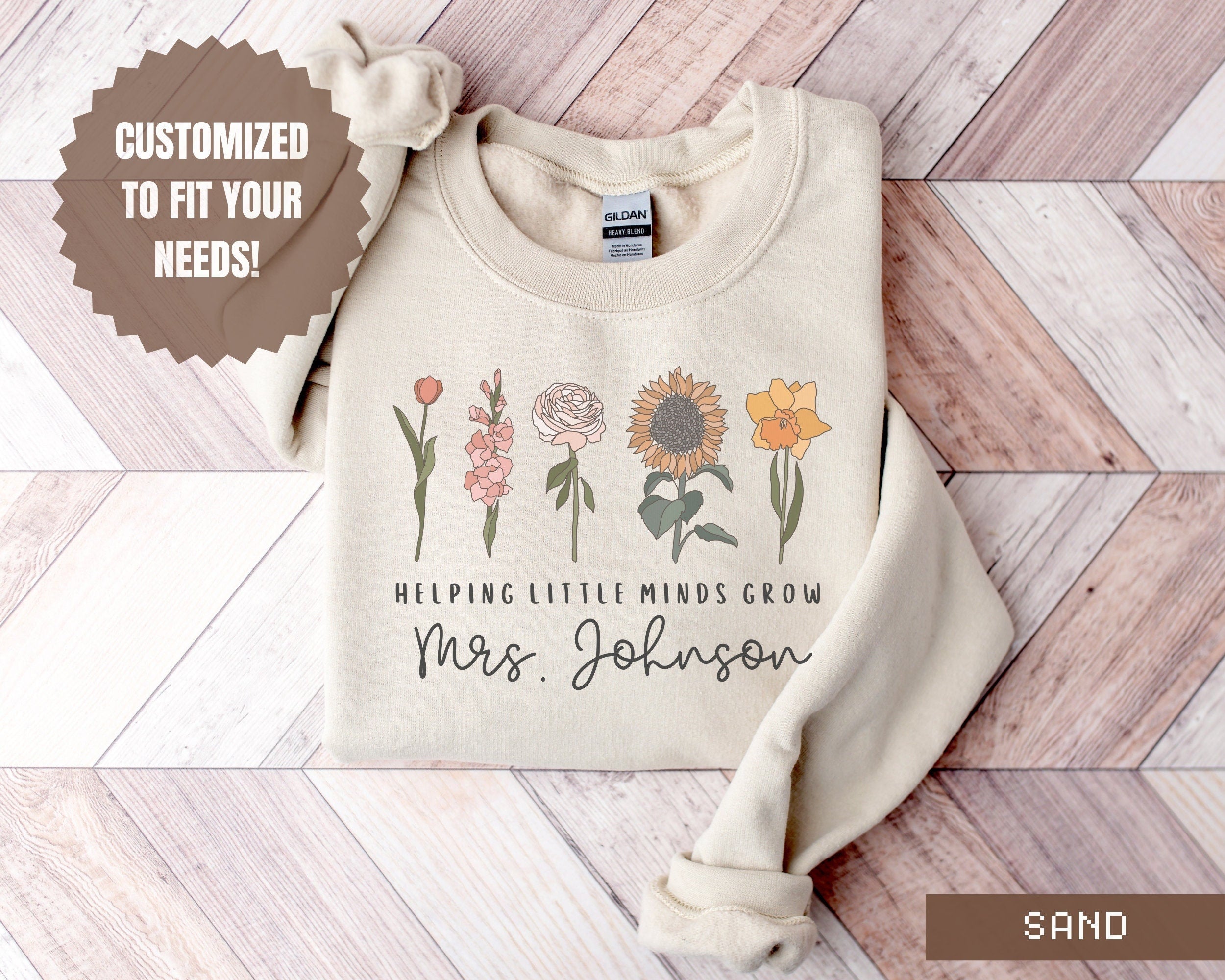 Are you looking for the perfect sweatshirt for that special teacher in your life? This CUSTOM floral Helping Little Minds Grow sweater makes the perfect personalized gift for yourself, a Teacher, a Pre-School Teacher, an Early Childhood Educator and more!