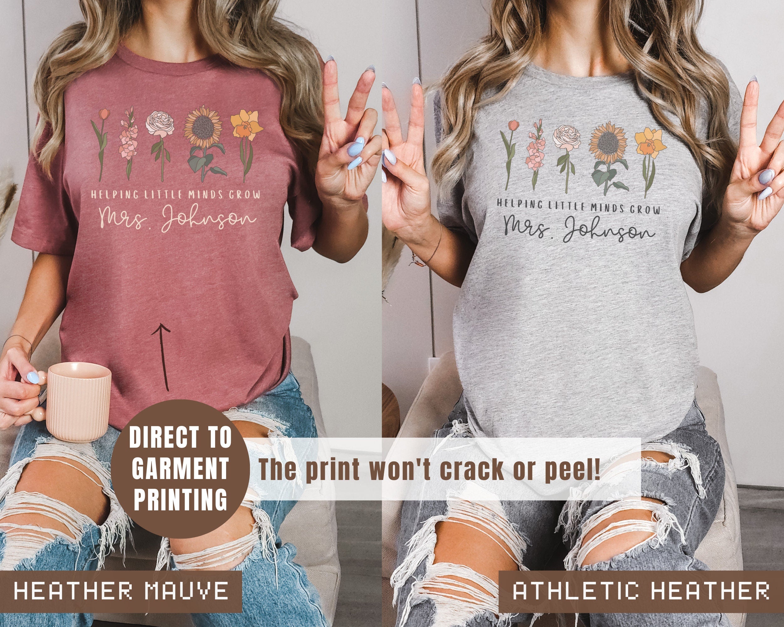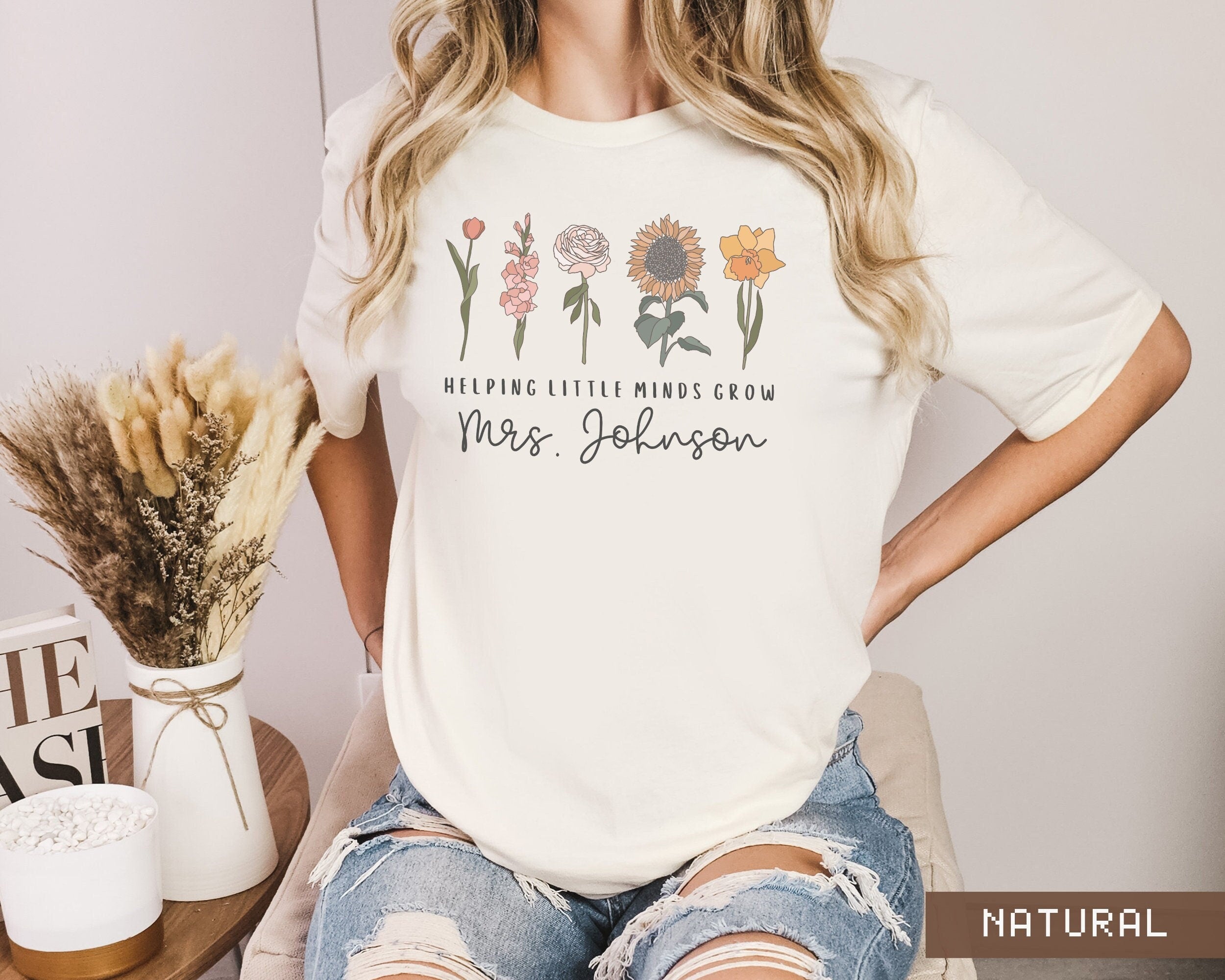 Are you looking for the perfect matching teacher shirts for your amazing school team? This beautiful Helping Little Minds Grow personalized t-shirt makes the perfect gift for your entire teacher crew!