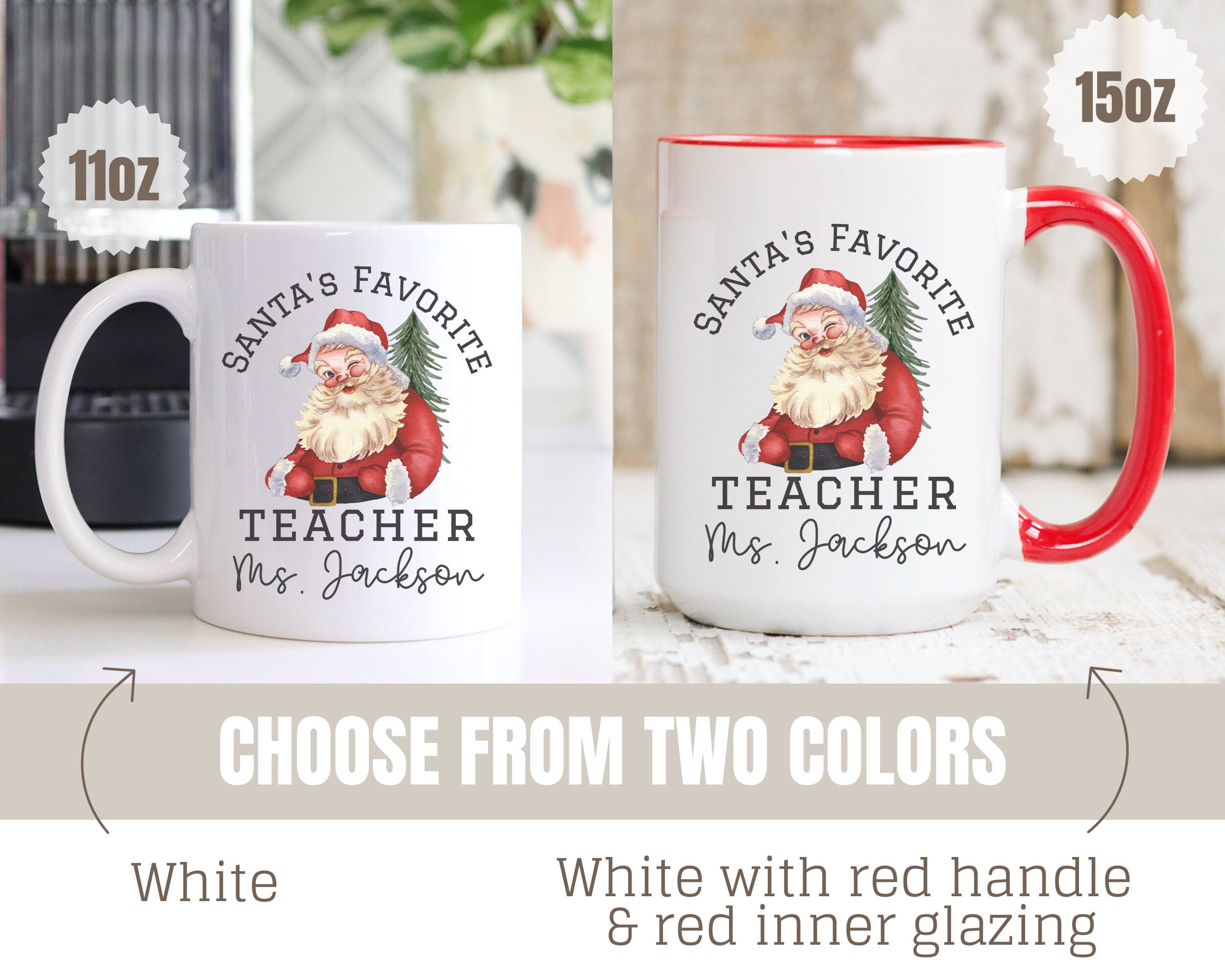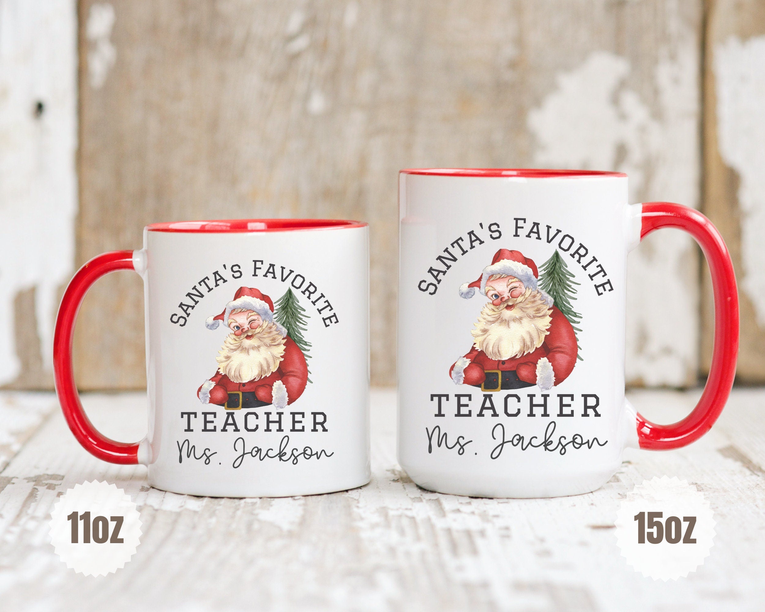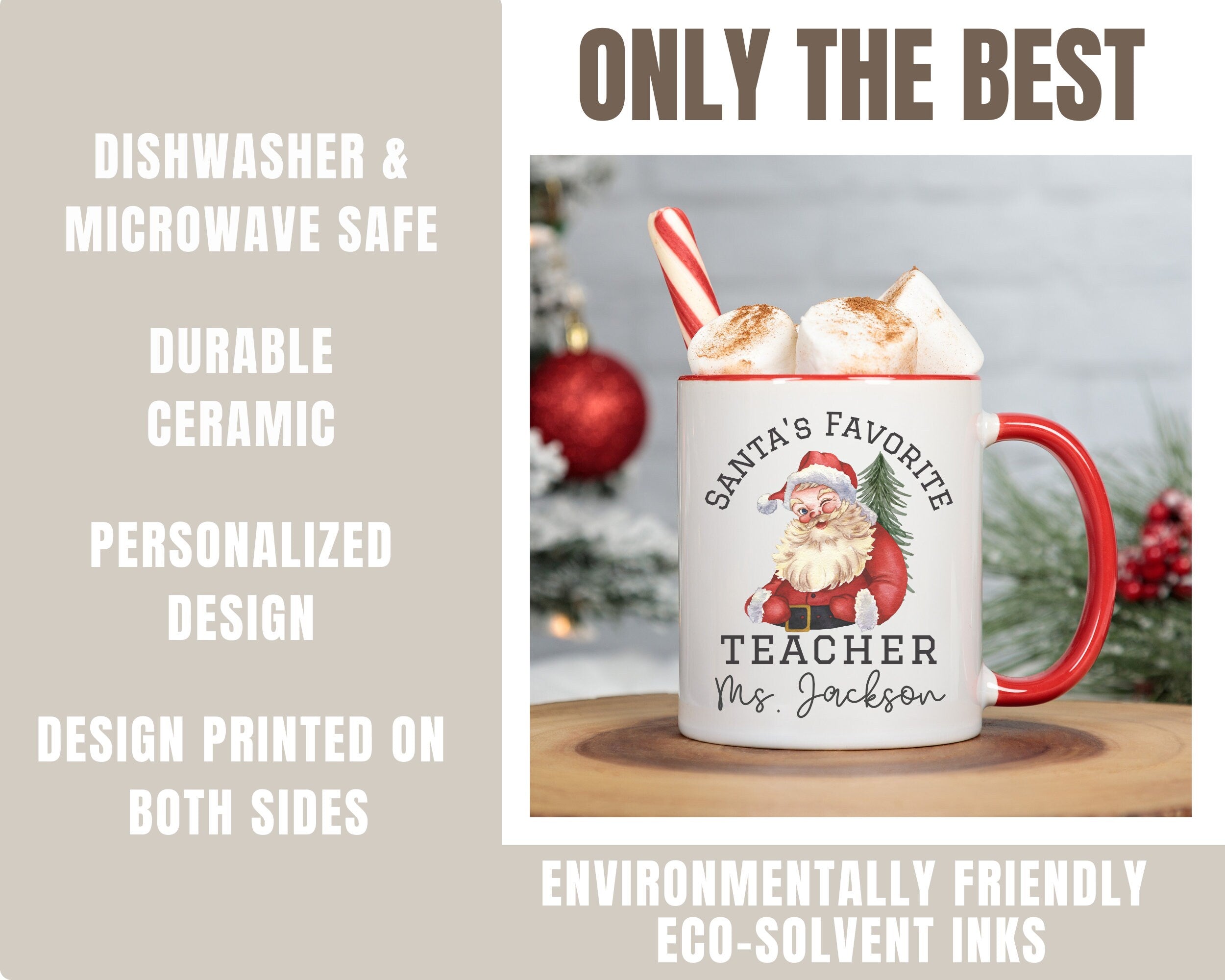 Are you looking for the perfect personalized gift for that special teacher in your life? This Santa's Favorite Teacher CUSTOM mug makes the perfect gift for any kind of teacher, a preschool/nursery teacher, daycare teacher, elementary school teacher, early childhood educator, or for yourself!