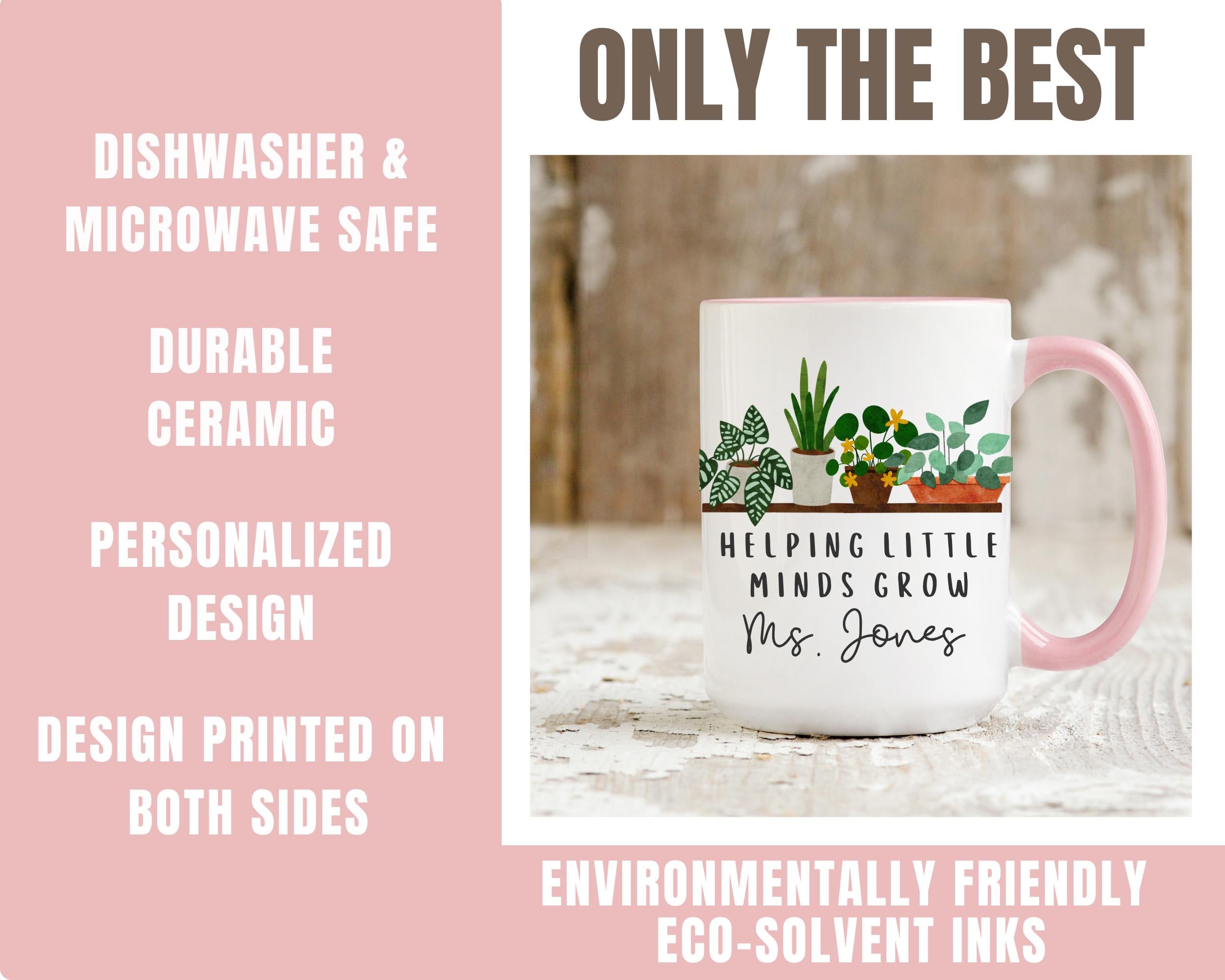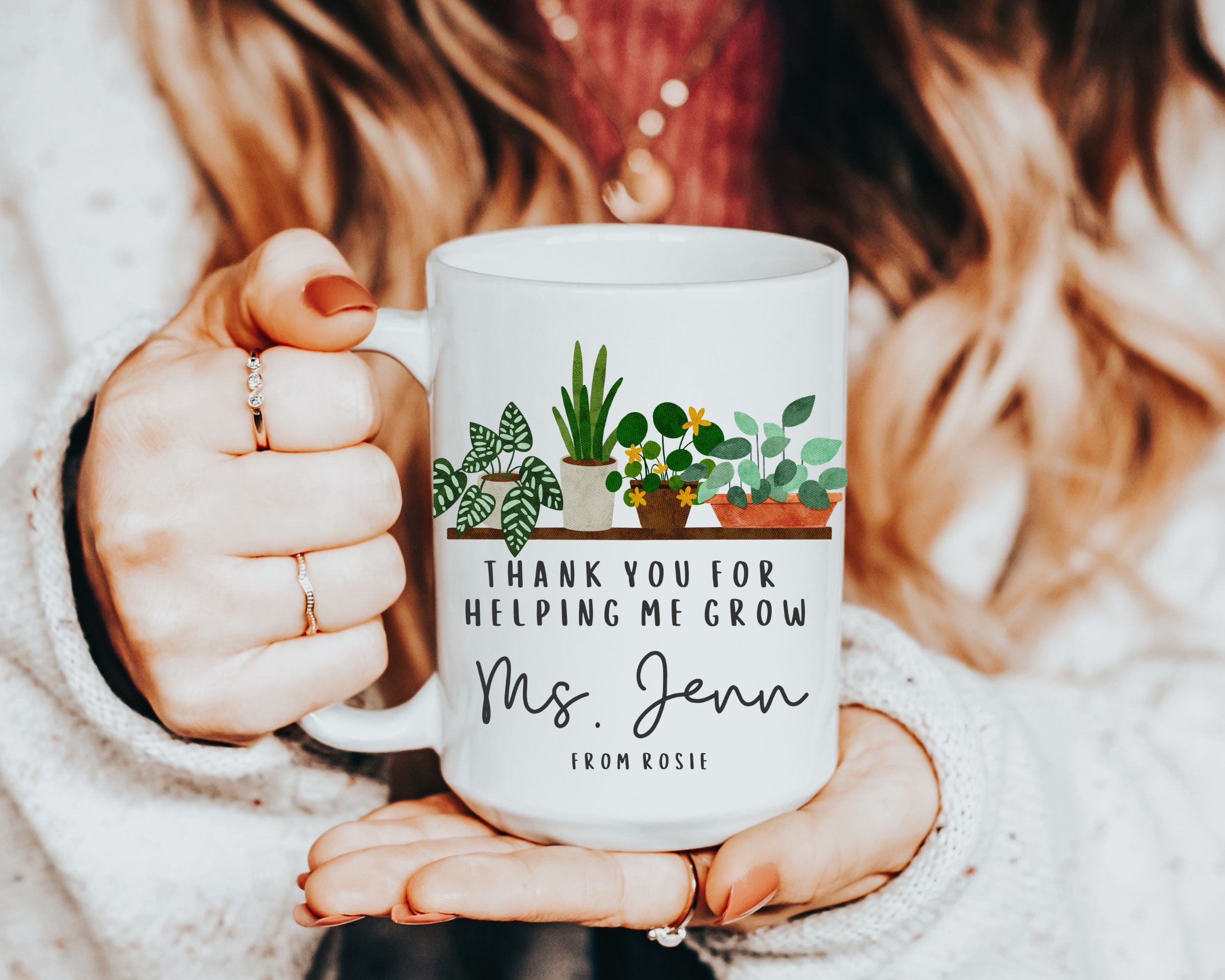 Are you looking for the perfect personalized gift for that special teacher in your life? This Thank You for Helping Me Grow CUSTOM mug makes the perfect gift for a preschool/nursery teacher, daycare teacher, elementary school teacher, early childhood educator!